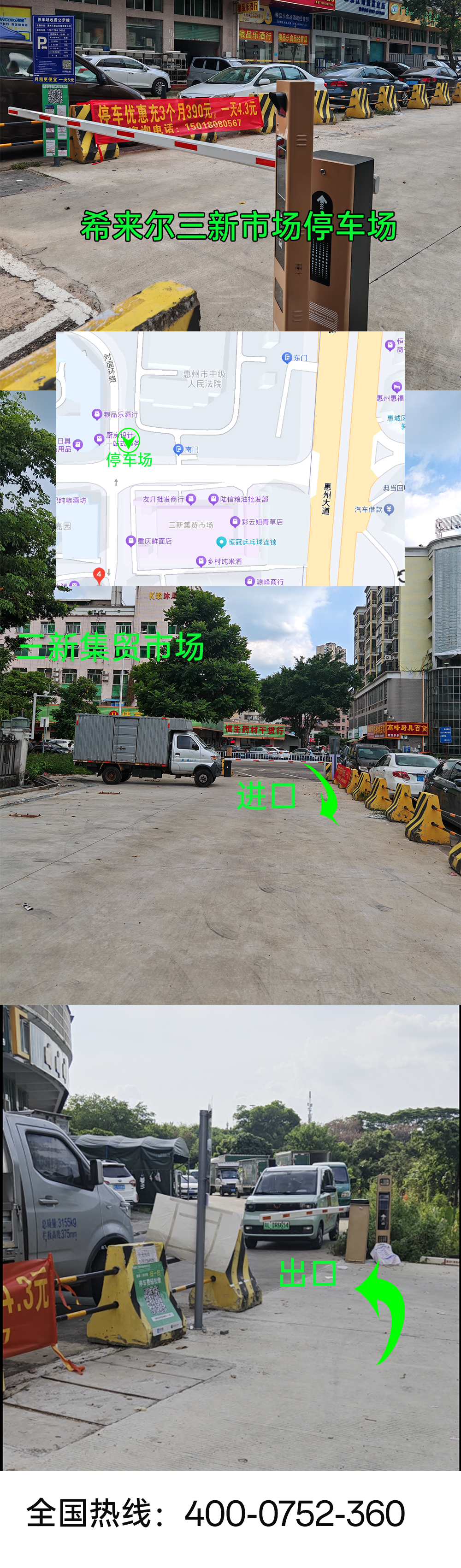 希来尔三新市场停车场位置:惠州市惠城区江北三新集贸市场旁(在市法院后面)